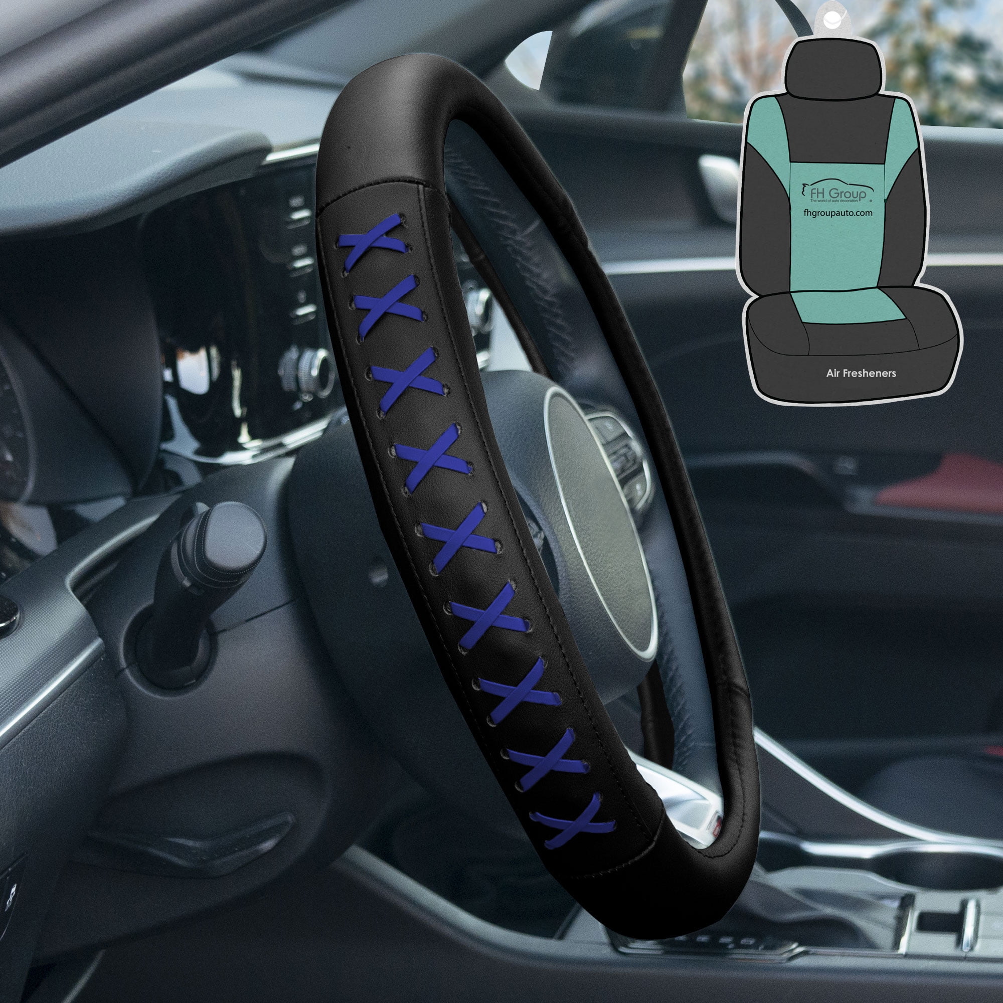 Fh Group Genuine Leather Lace Up Steering Wheel Cover With Bonus Air Freshener Walmart Com